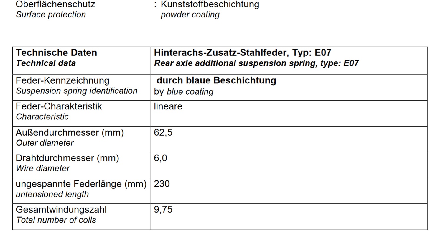 Zusatzfedern - Höherlegungsfedern zur verstärkung der Serienfeder