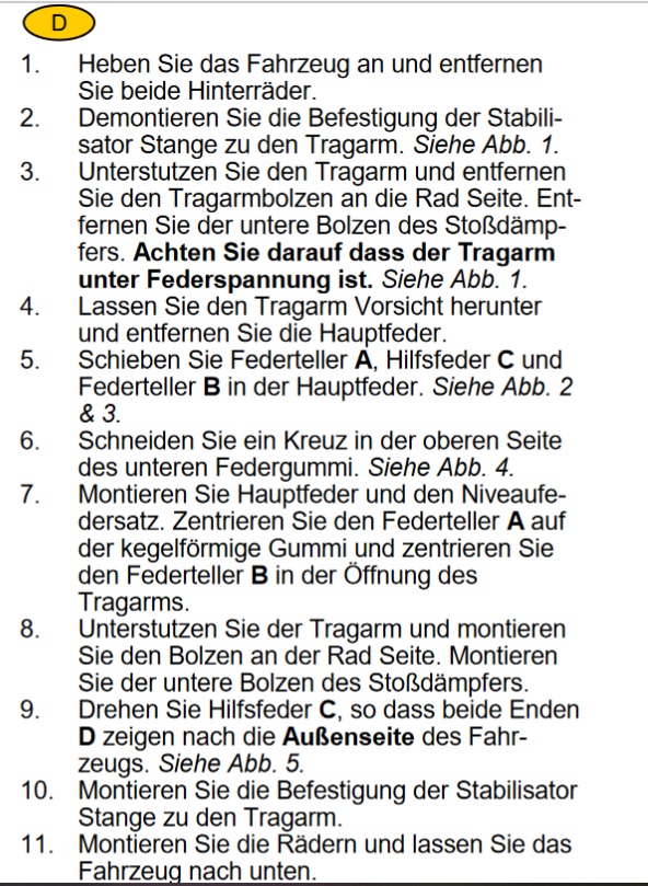 - nicht für Fahrzeuge mit Niveauregelung