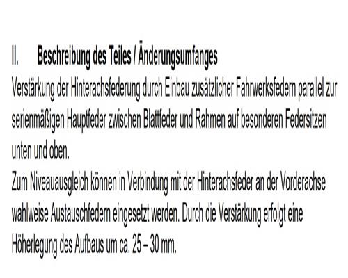 Durch die Verstärkung erfolgt eine Höherlegung des Aufbausan Achse-2 (HA)um ca. 25-30mm *