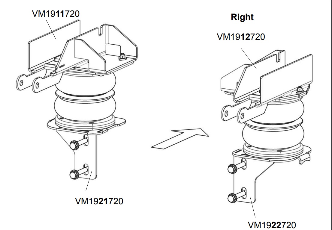 1 Satz Zusatz-Luftfedern für die Hinterachse zur Verstärkung der serienmässigen Blattfedern. Die Luftfederung wird zwischen Rahmen und Achse verbaut.