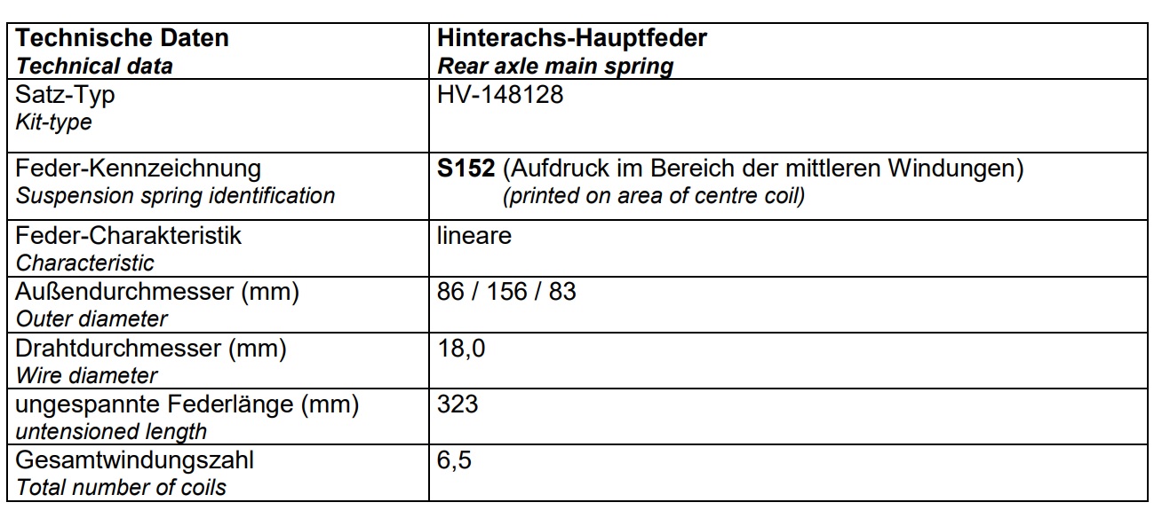 - Heavy Duty Satz, für Fahrzeuge mit einer dauerhaften Beladung von mindestens 650 kg