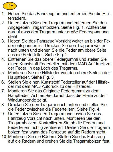 Aus diesem Grund hat MAD die Zusatzfedern entwickelt. Die Federn versorgen die Serienfederung optimal mit zusätzlicher Federkraft, das Fahrzeug hat mehr Fahrstabilität, mehr Komfort und die Sicherheit verbessert sich erheblich. Die Federn können mit wenig Aufwand von jeder Werkstatt eingebaut werden.