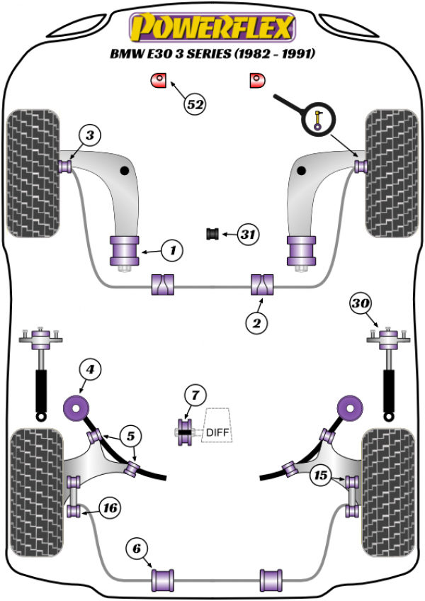 52- PU Puffer Kühlerhalterung BMW E30 inkl. M3 8mm Versatz nach vorne PFF5-4652