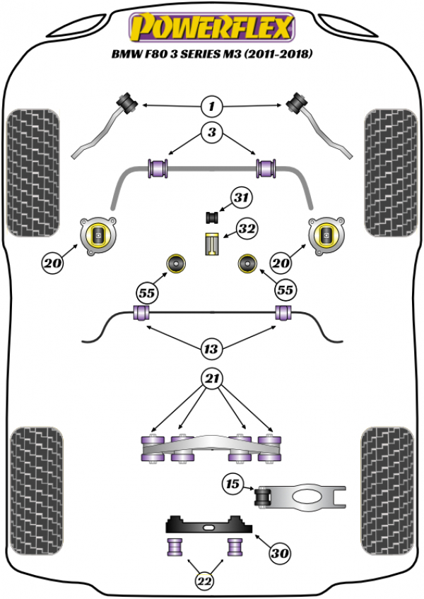 32- PU Lager Buchse hinten Schaltgestänge für BMW 3er + M3 F30 F31 F34 F80