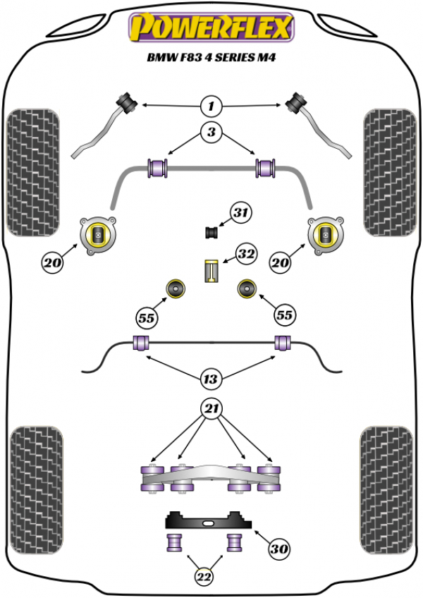 32- PU Lager Buchse hinten Schaltgestänge für BMW 4er + M4 F32 F33 F36 F82 F83