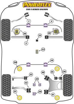 Hier finden Sie Powerflex PU Buchsen in der Road Series Variante für BMW 5er Typ E60 - E61 Modelle mit Hinterradantrieb günstig zu kaufen. Die Vorteile sind - präzise Passgenauigkeit - verbessertes Handling - erhöhte Sicherheit - ein einfacherer Einbau.