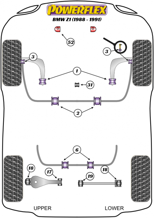52- PU Puffer Kühlerhalterung für BMW Z1 8mm Versatz nach vorne PFF5-4652